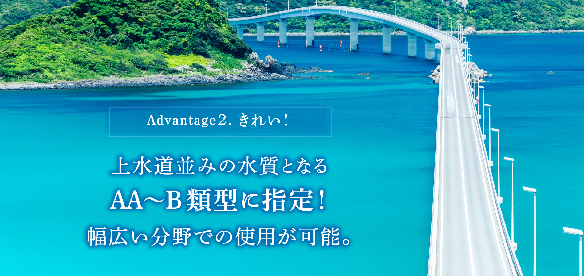 環境省基準AA〜B類型に適合する、上水道並みの高品質な水質。