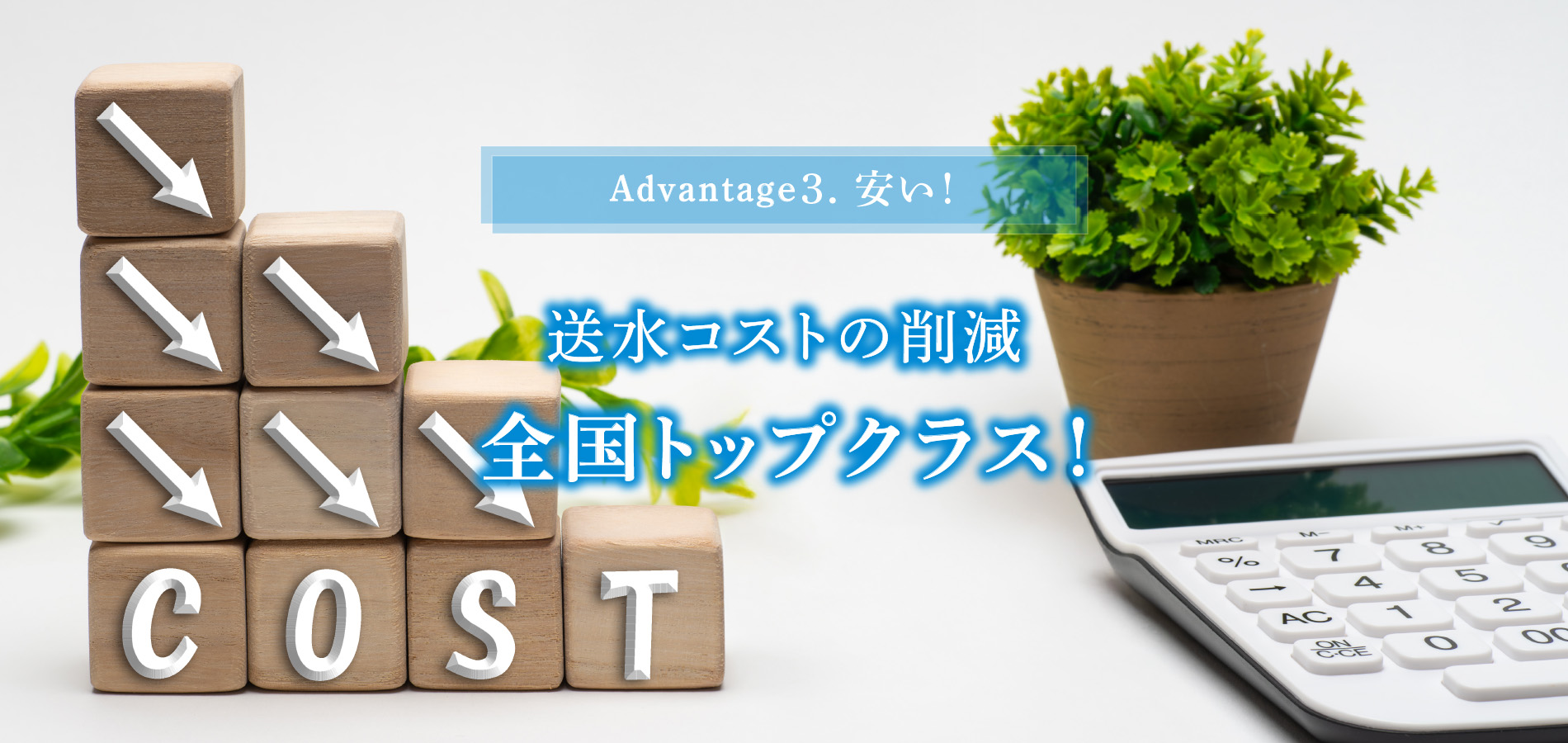 急峻な地形を活かした送水方式で大幅にコストカット。